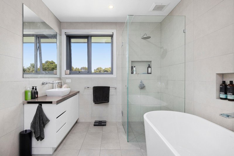 A family room offers space for a lounge suite and billiards or table tennis table. The spacious kitchen has a stainless steel cooktop and dishwasher along with ample bench space. A frameless glass shower and freestanding bath feature in the main bathroom. Parents enjoy their own sanctuary with an ensuite and door directly onto the rear deck.